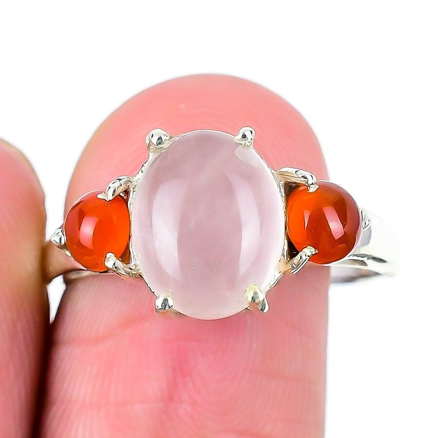 Natural Rose Quartz 925 Sterling Silver New Statement Sister Ring Jewelry US 9.5