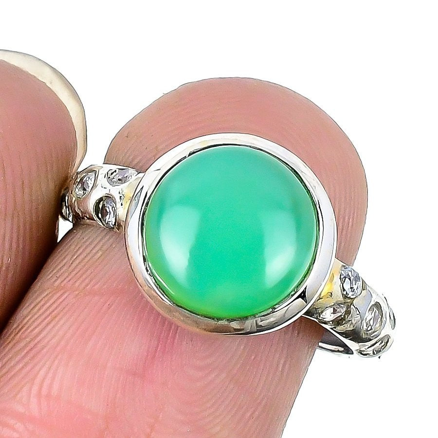 Chrysophrase Gemstone Birthday Statement Artisan Ring 925 Sterling Silver US 7.5