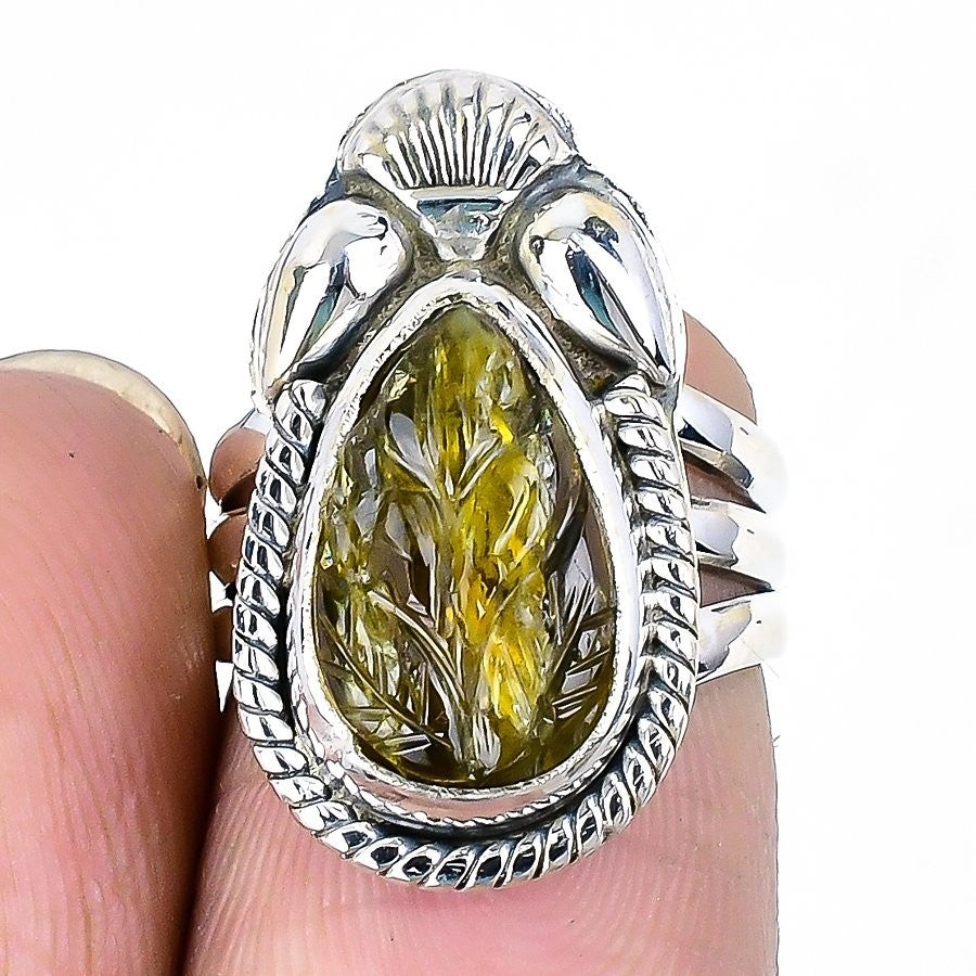 Natural Green Tourmaline Carving Solid Sterling Silver Statement New Ring US 4.5