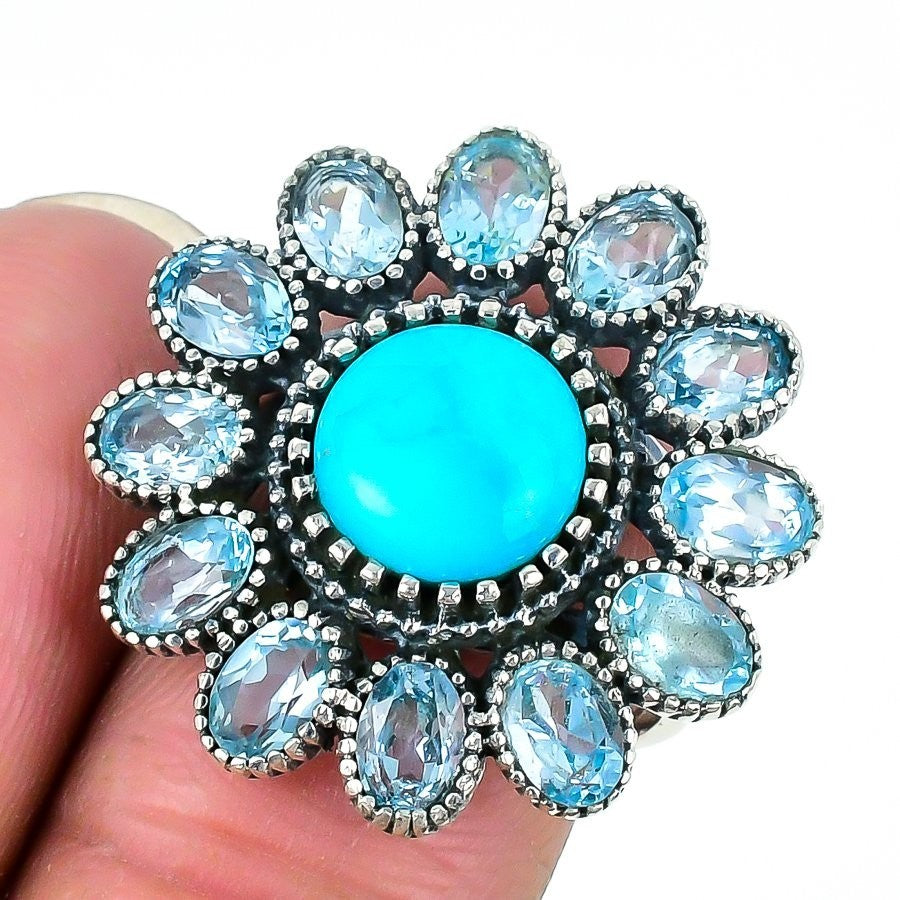 Daughters Day Sale Sleeping Turquoise Gemstone 925 Silver Statement Ring Size 8