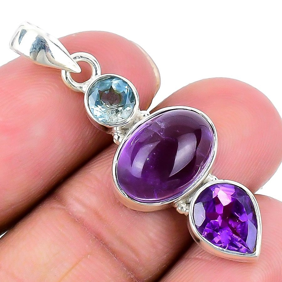 Sage Amethyst Stone 925 Sterling Silver Engagement Art Deco Daughter New Pendant