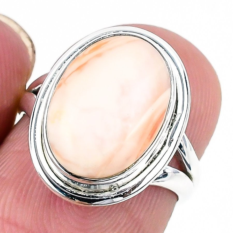 Milky Opal Gemstone October Birth Sister Boho Statement Ring Size 6 Solid Silver