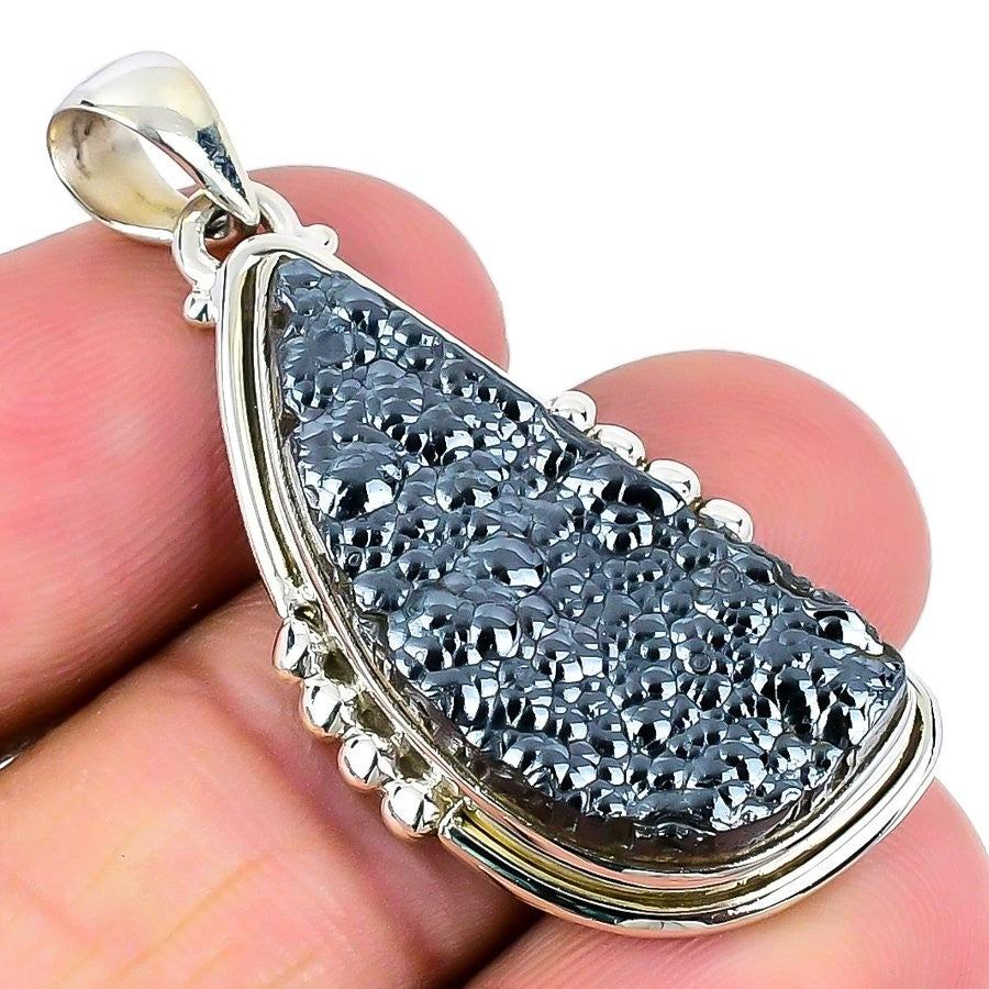 Shungite Stone 925 Sterling Silver Wedding Ethnic Mother Engagement Boho Pendant