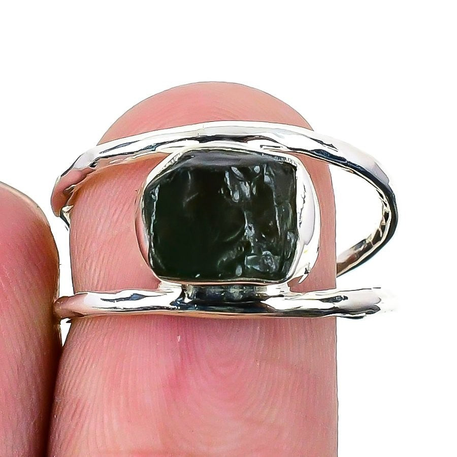 Natural Moldavite Handmade Statement Wife Wedding Ring Jewelry 925 Silver US 8.5
