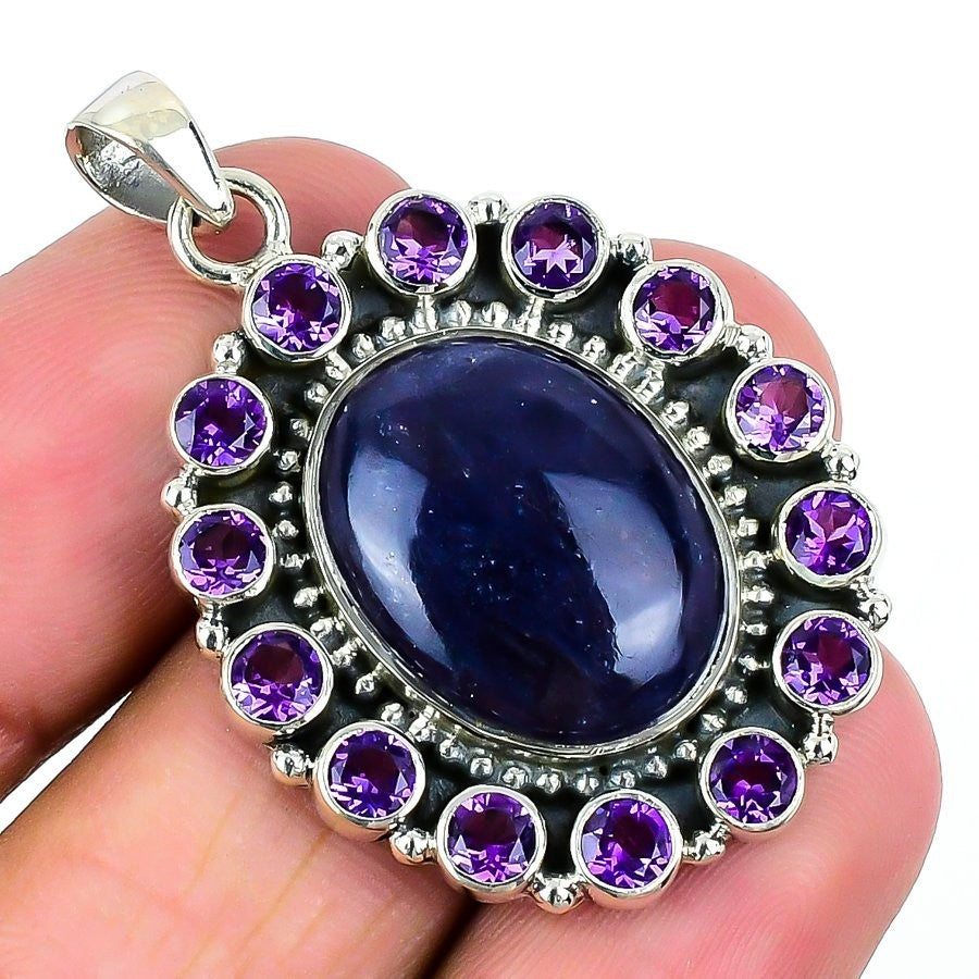 Sodalite Gemstone 925 Solid Silver Anniversary Handcrafted New Pendant Jewelry