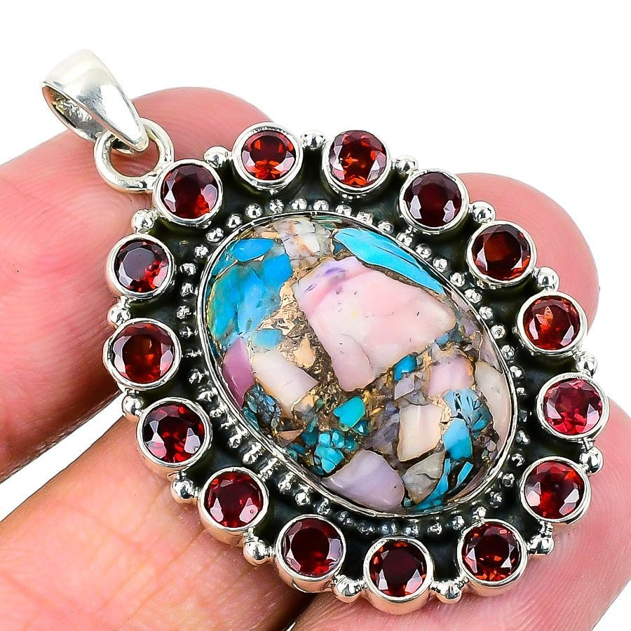 Daughters Day Deal Spiny Oyster Stone 925 Silver Mother Boho Anniversary Pendant