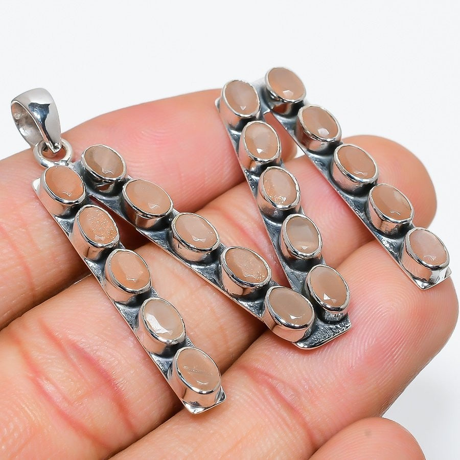 Natural Rainbow Moonstone Daughter Ethnic Wedding Pendant Solid Sterling Silver