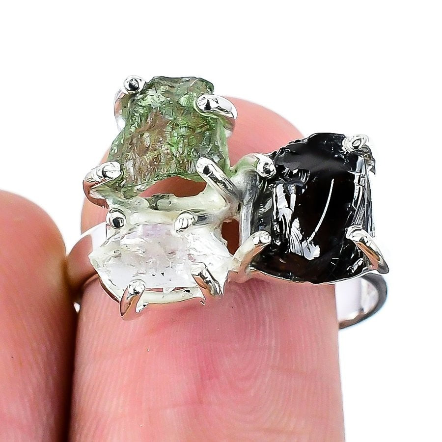 Natural Herkimer Daimond 925 Silver Daughters Day Statement Wedding Elegant Ring