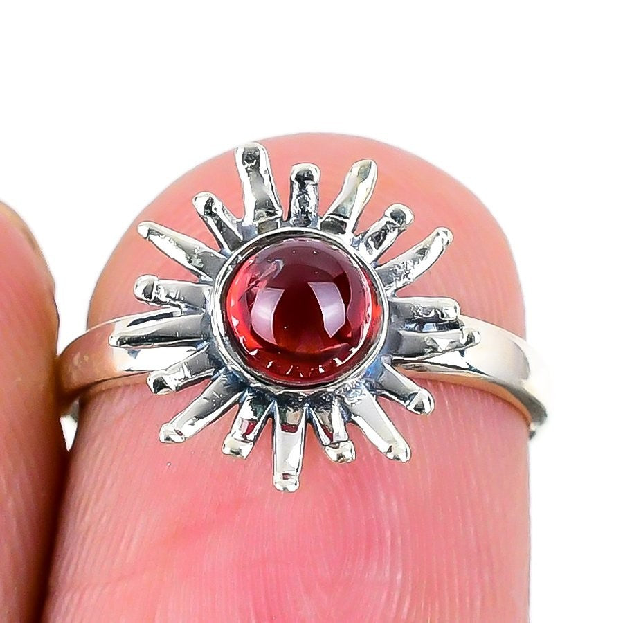 Daughters Day Sale Hessonite Garnet Stone Sterling Silver Statement Ring Size 5