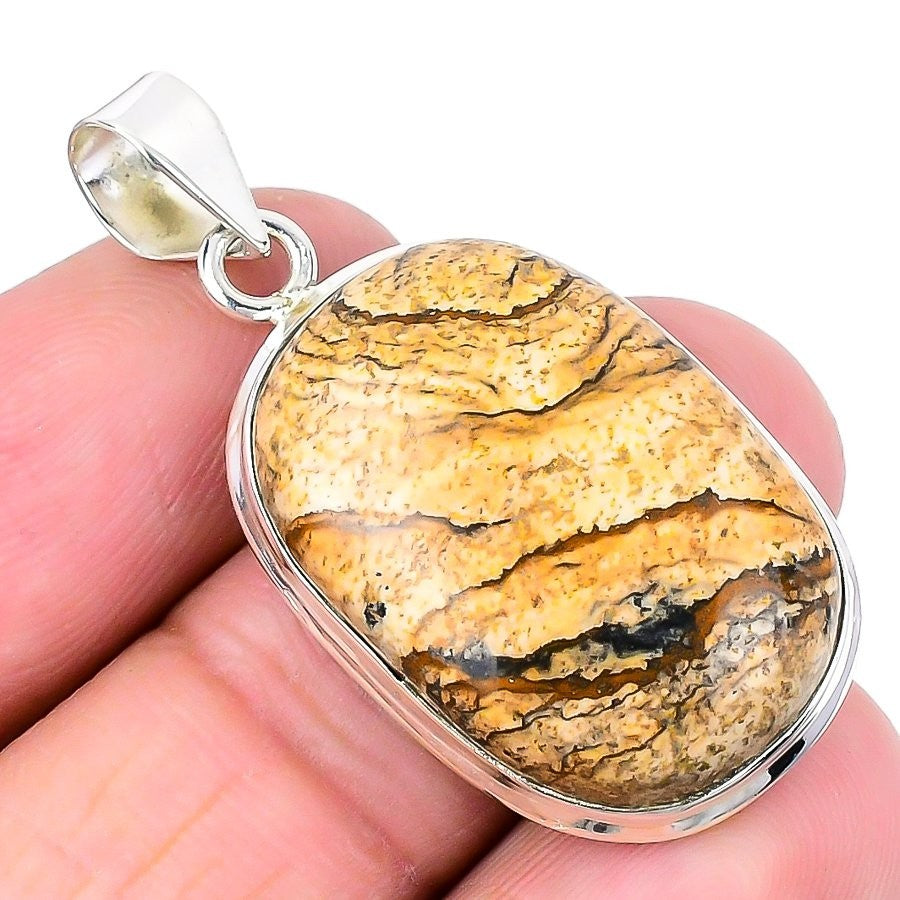 Picture Jasper Gemstone 925 Silver Ethnic Unique Sister Wedding New Boho Pendant