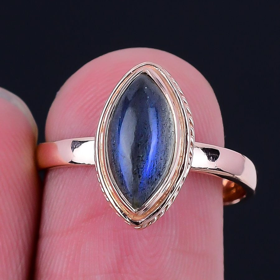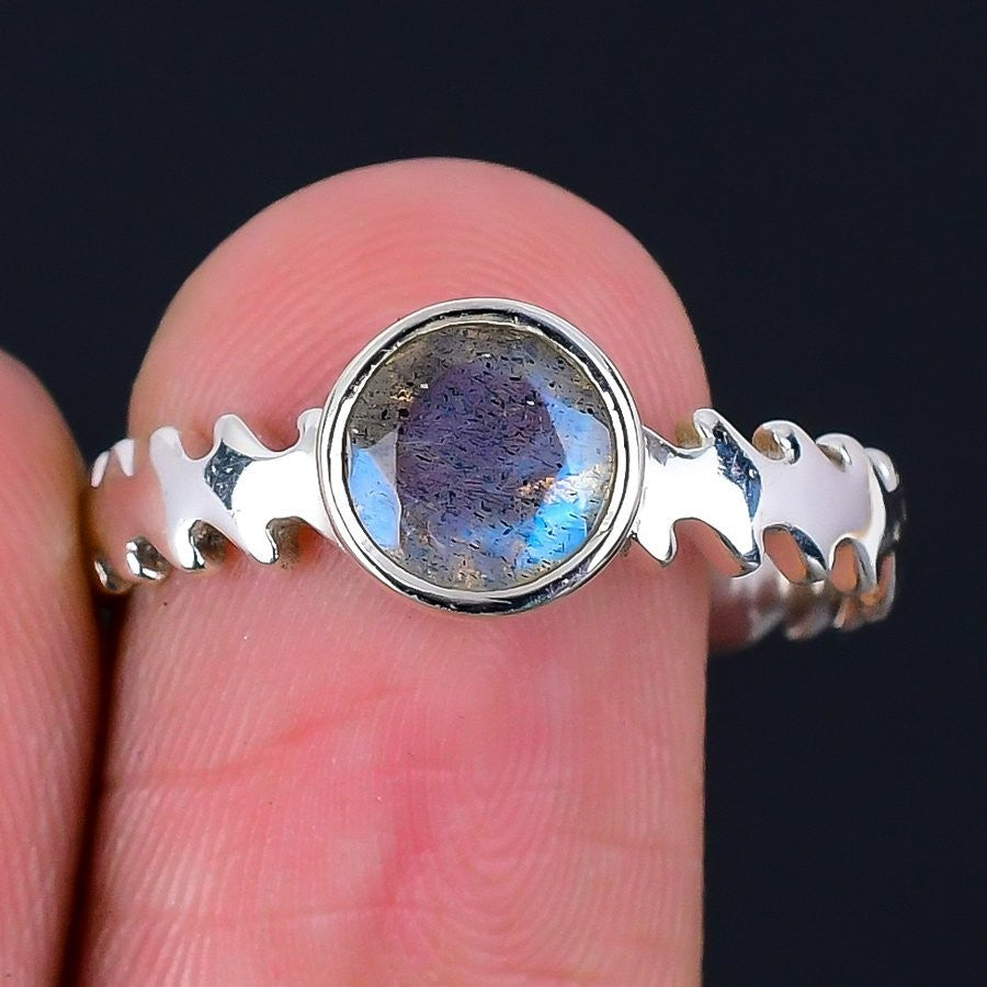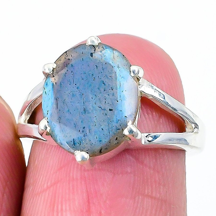 Natural Labradorite Solid Sterling Silver Birthday Statement Sister Ring Jewelry