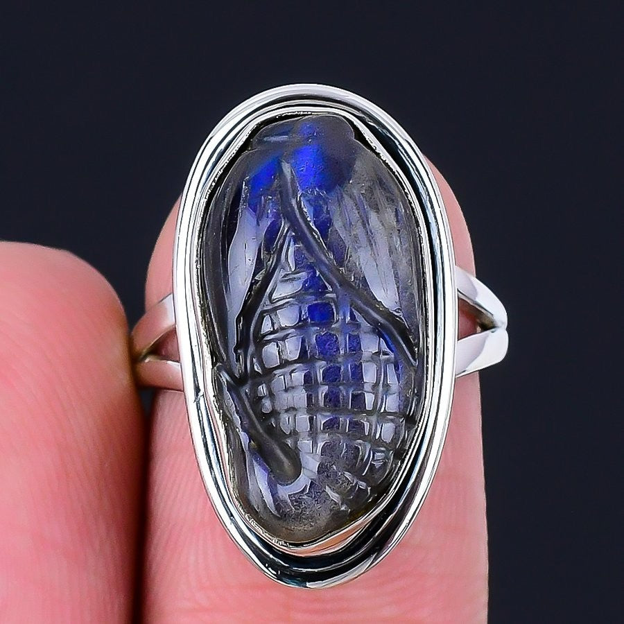 Third Eye Chakra Labradorite Stone Wedding Mother Statement Ring 925 Silver US 8