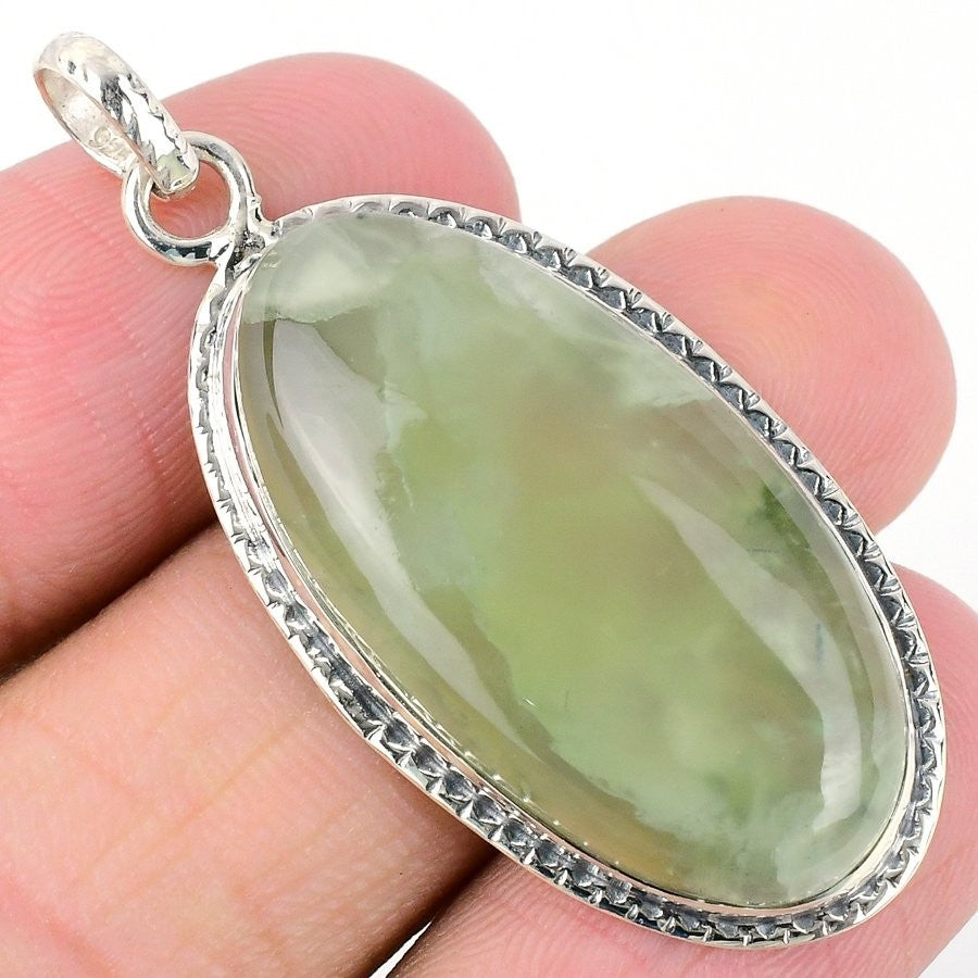 Natural Prehnite Best Daughters Gift Boho Trendy Pendant Jewelry Sterling Silver