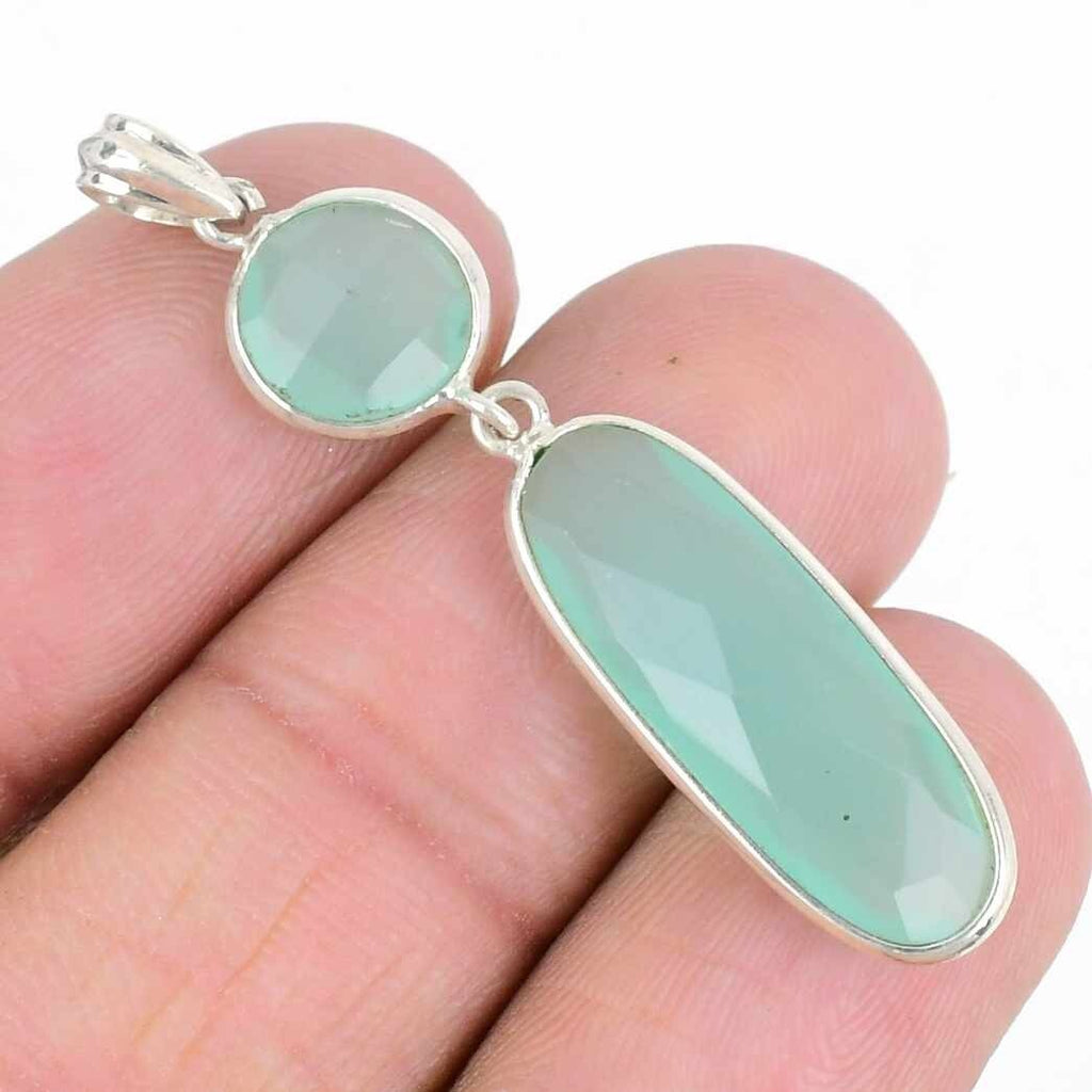 Aqua Chalcedony Gemstone Anniversary Wedding Pendant Jewelry 925 Sterling Silver