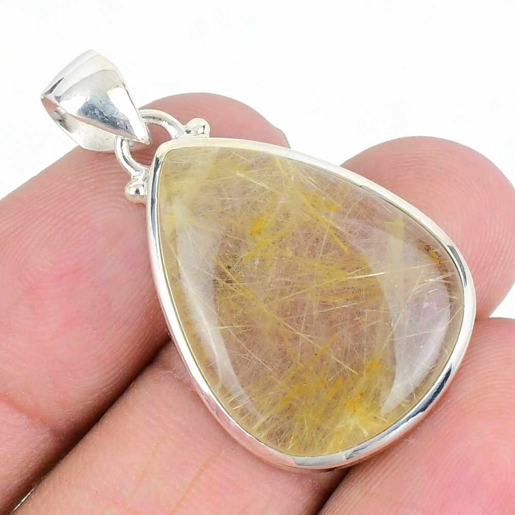 Golden Rutile Gemstone 925 Silver Mothers Gift Wife Engagement Birthday Pendant