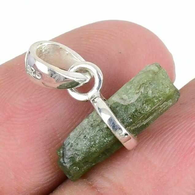 Green Tourmaline Gemstone Wife Birthday Engagement Wedding Pendant Solid Silver