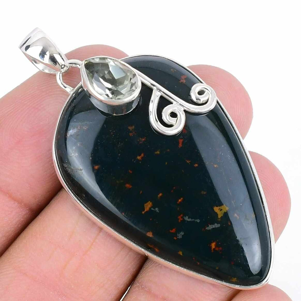 March Birth Blood Stone Stone Solid Sterling Silver Unique New Pendant Jewelry