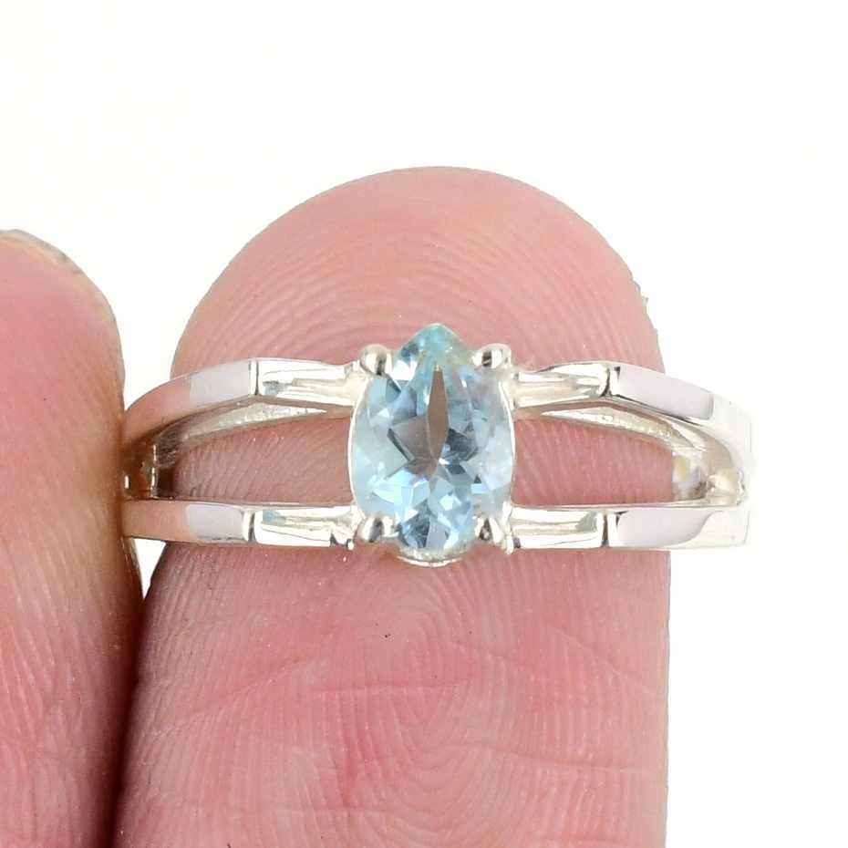 Swiss Blue topaz Gemstone Cluster Art Deco Artisan Sister Ring Size 7 925 Silver
