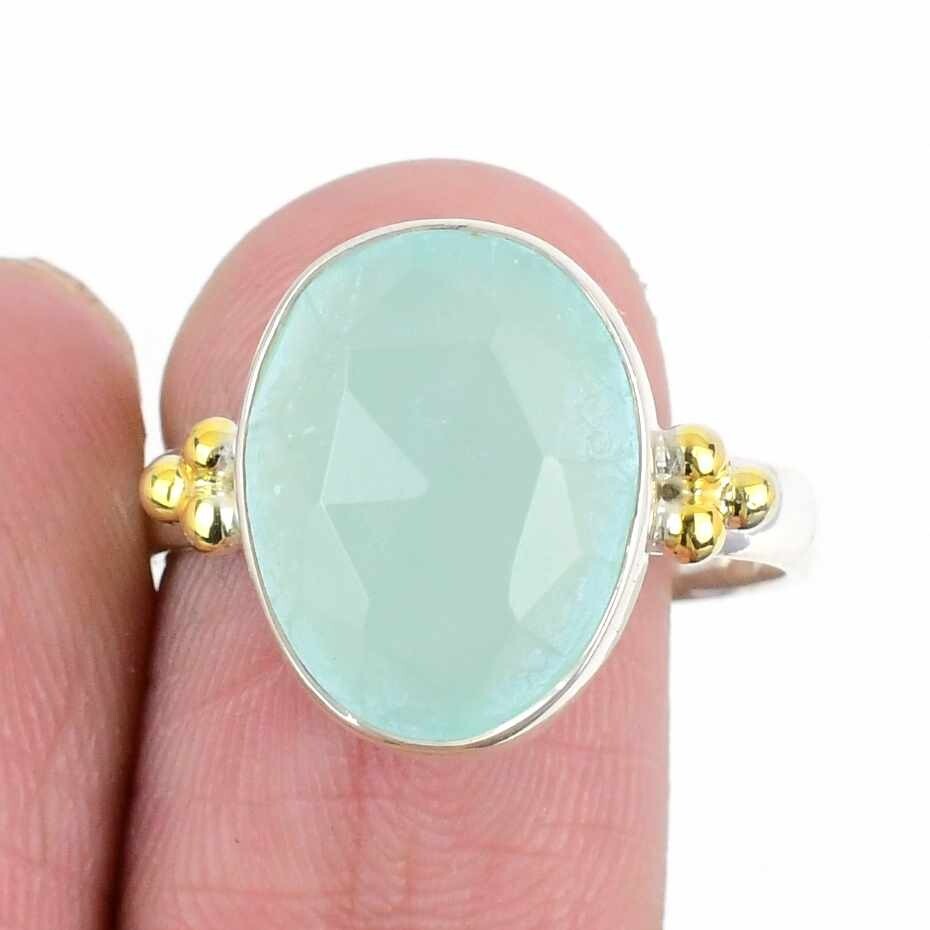 Natural Aqua Chalcedony 925Ā SolidĀ Silver Cluster Daughter Birthday Ring Size 10
