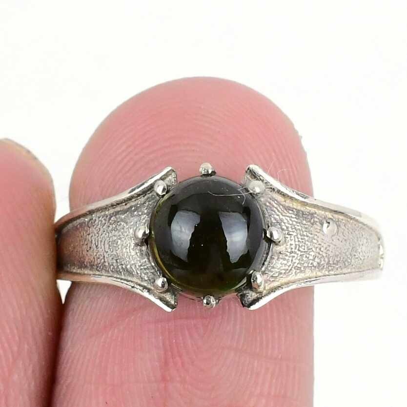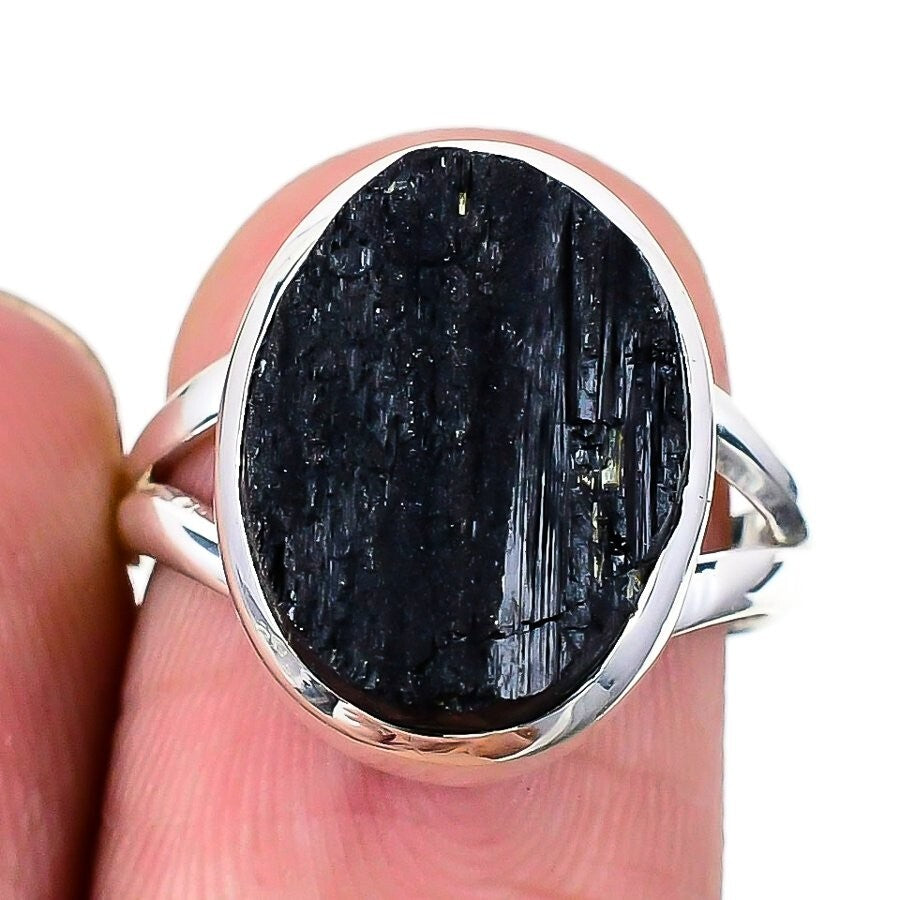 Black Tourmaline Gemstone 925Ā SolidĀ Silver Artisan Statement Ring Jewelry Size 7