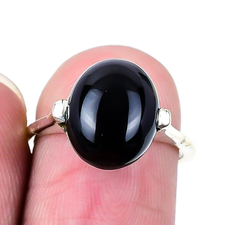 Mothers day Sale Natural Black Onyx 925 Sterling Silver Statement Ring US 6.5