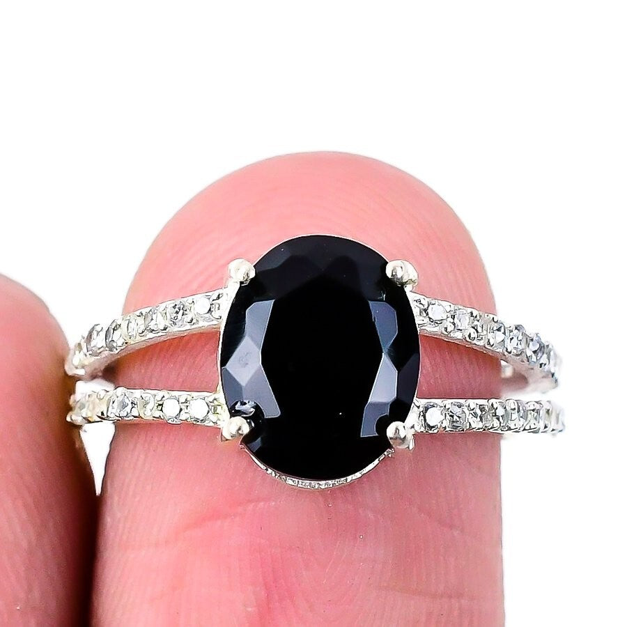 Black Spinel Gemstone 925Ā SolidĀ Silver Handcrafted Statement Ring Jewelry US 7