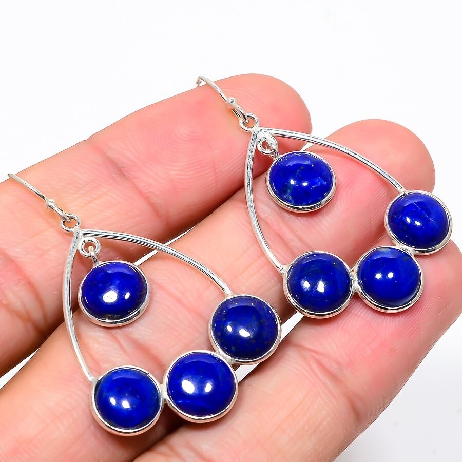 Natural Lapis Lazuli 925Ā SolidĀ Silver Birthday Hook Drop Dangle Earrings Jewelry
