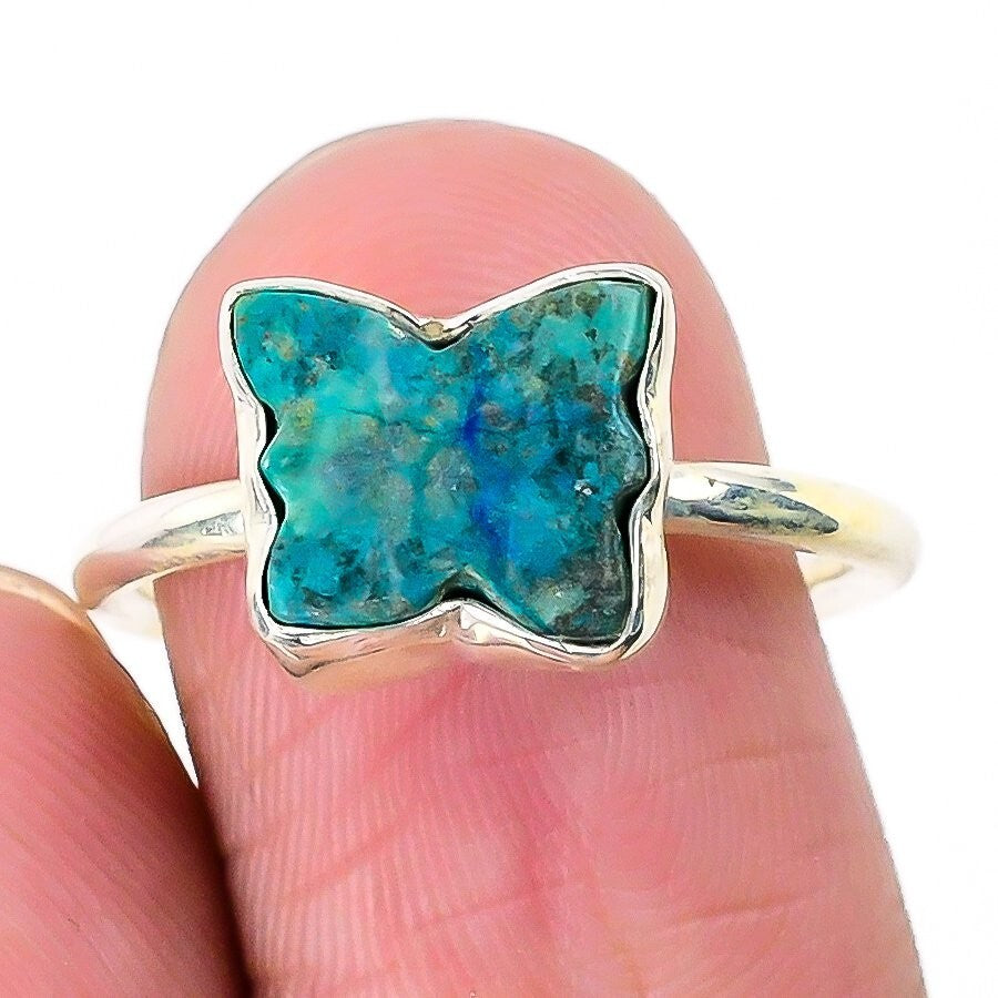 Throat Chakra Chrysocolla Gemstone 925 Sterling Silver Statement Ring Jewelry