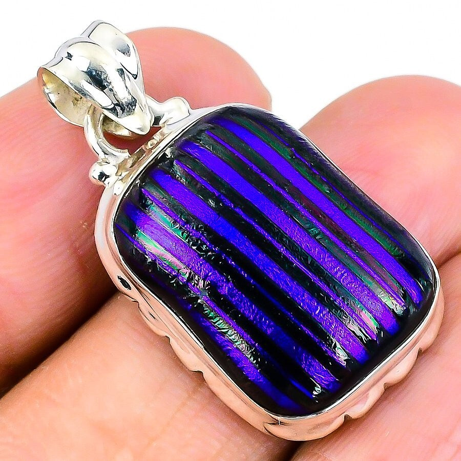 Dichoric Glass Stone Anniversary Handcrafted Boho Pendant Solid Sterling Silver