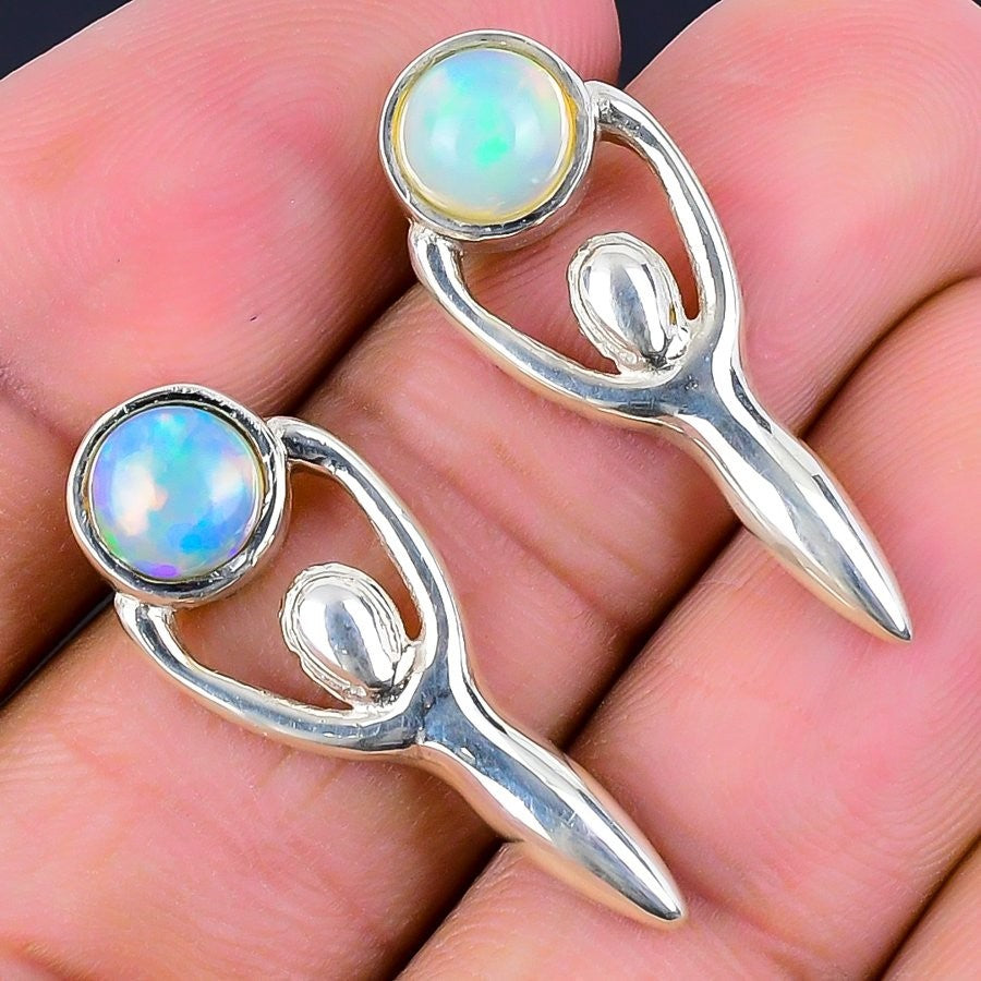 Ethiopian Opal Stone 925 Silver Engagement Art Deco Drop Dangle Earrings Jewelry