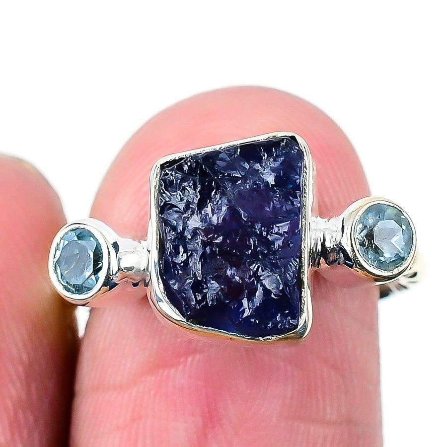 Throat Chakra Natural Aquamarine Cluster Sister Wedding Ring Size 6 Solid Silver