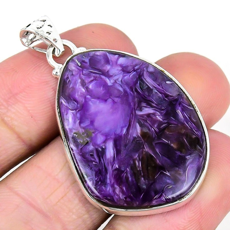 Russian Charoite Stone Elegant Channel Set Pendant Jewelry Solid Sterling Silver