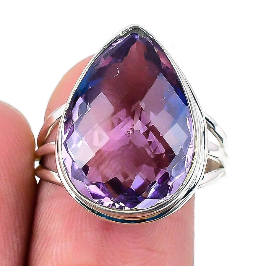 Natural Amethyst Statement Daughter February Birth Ring Jewelry Sterling Silver