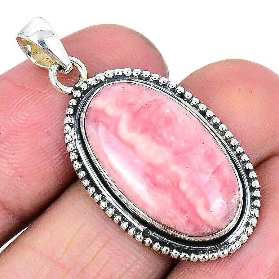 Heart Chakra Rhodochrosite Stone Sterling Silver Engagement Channel Set Pendant