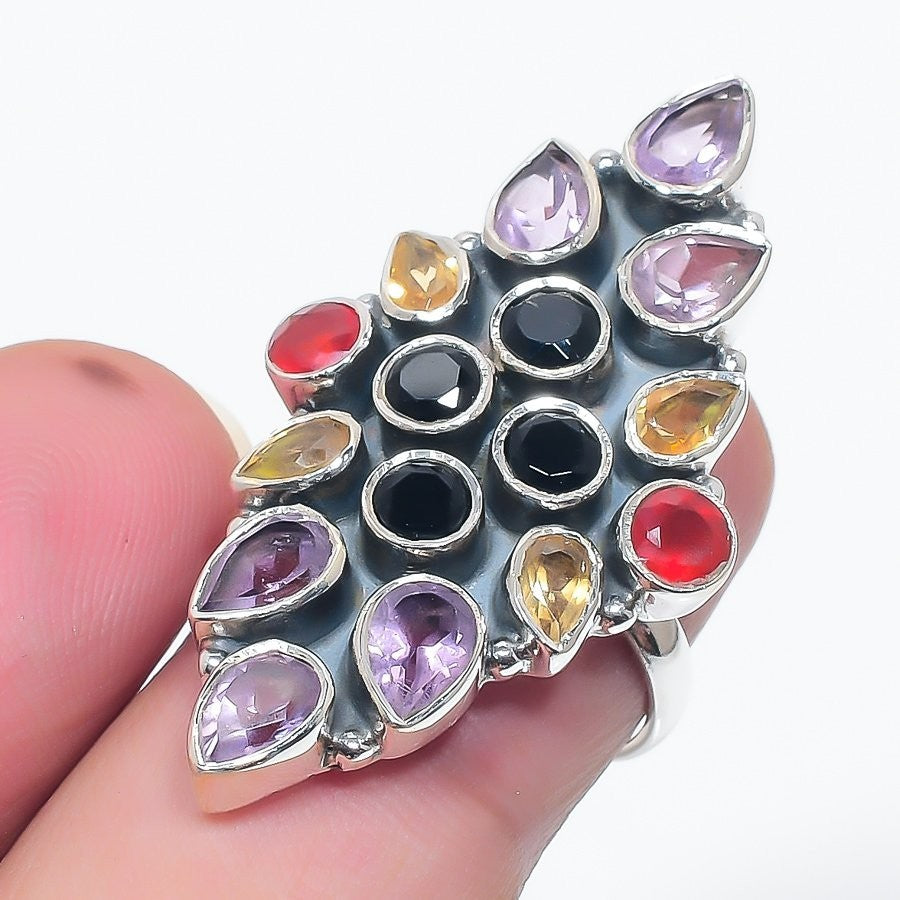 Amethyst Gemstone Solid Sterling Silver Mother Statement Boho Ring Jewelry US 9