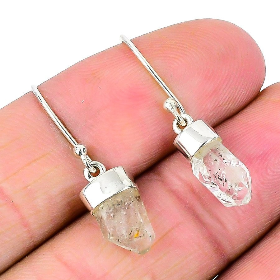 Natural Herkimer Daimond Dangle Drop Artisan Hook Sister Earrings Solid Silver
