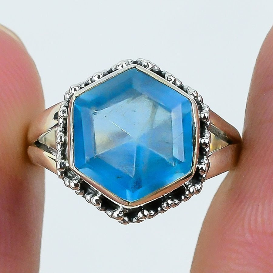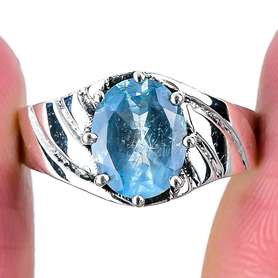 Natural Aquamarine Sterling Silver Daughter Statement Handmade Wedding Ring US 9