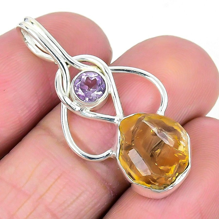 Citrine Rough Stone Sterling Silver November Birth Daughter Boho Pendant Jewelry