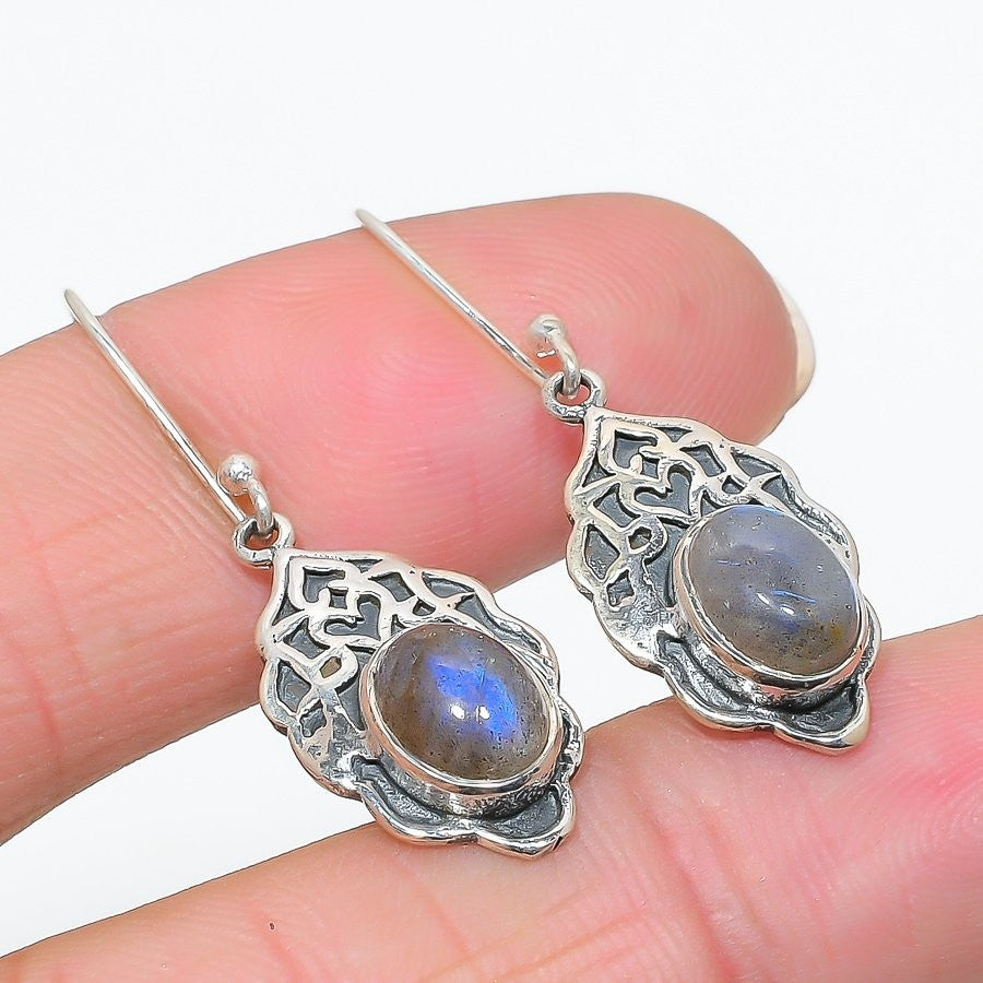 Labradorite Gemstone 925Ā SolidĀ Silver Hook Dangling Trendy New Earrings Jewelry