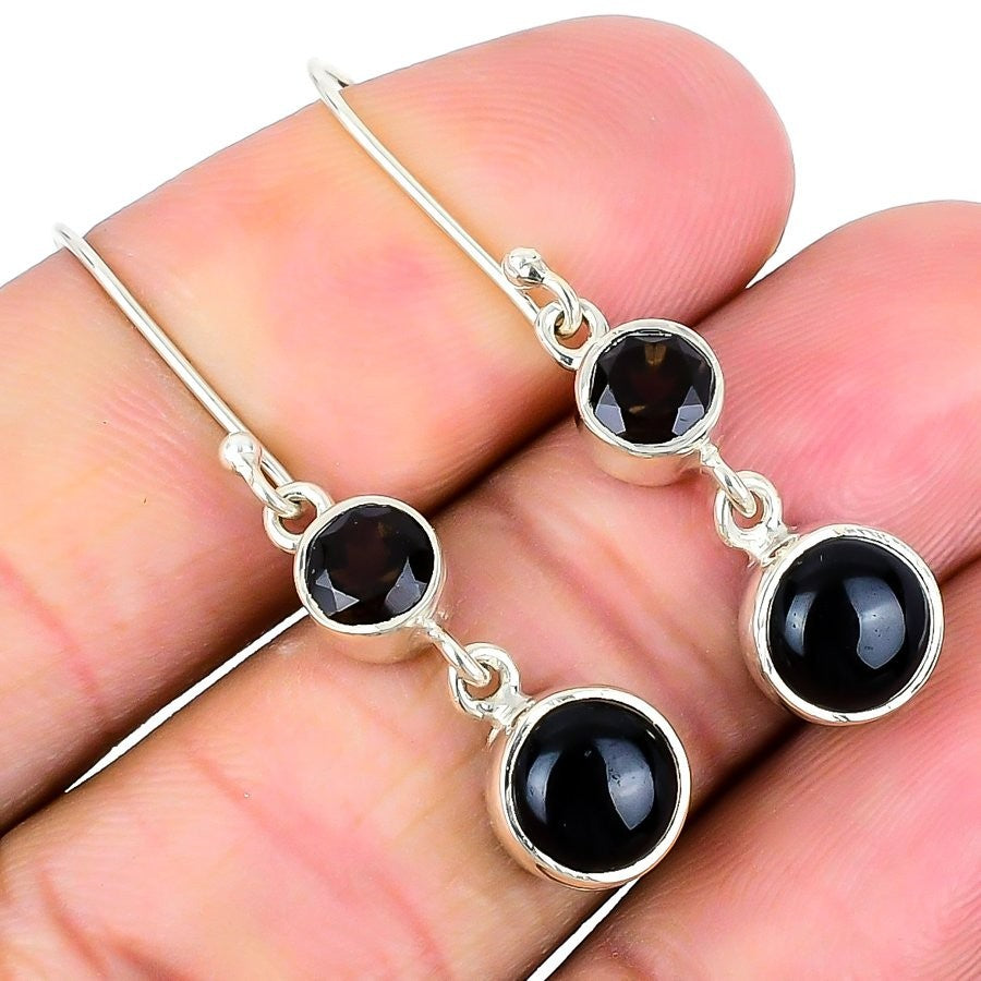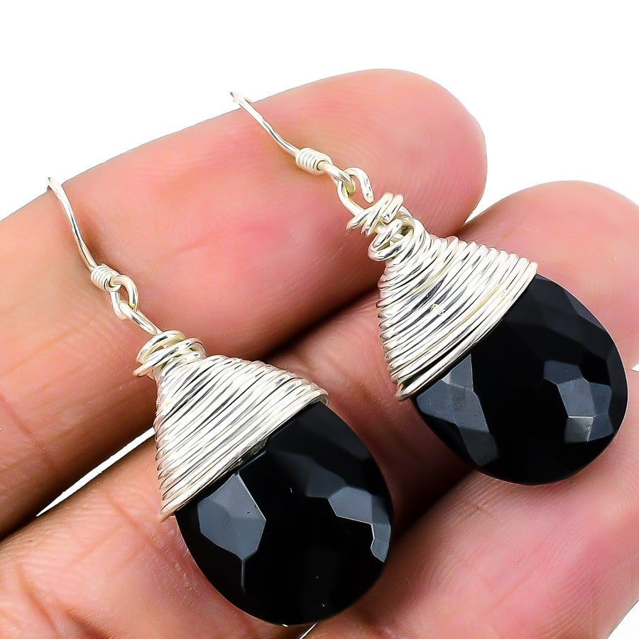 Black Onyx Gemstone 925Ā SolidĀ Silver Wife Drop Dangle Hook Anniversary Earrings