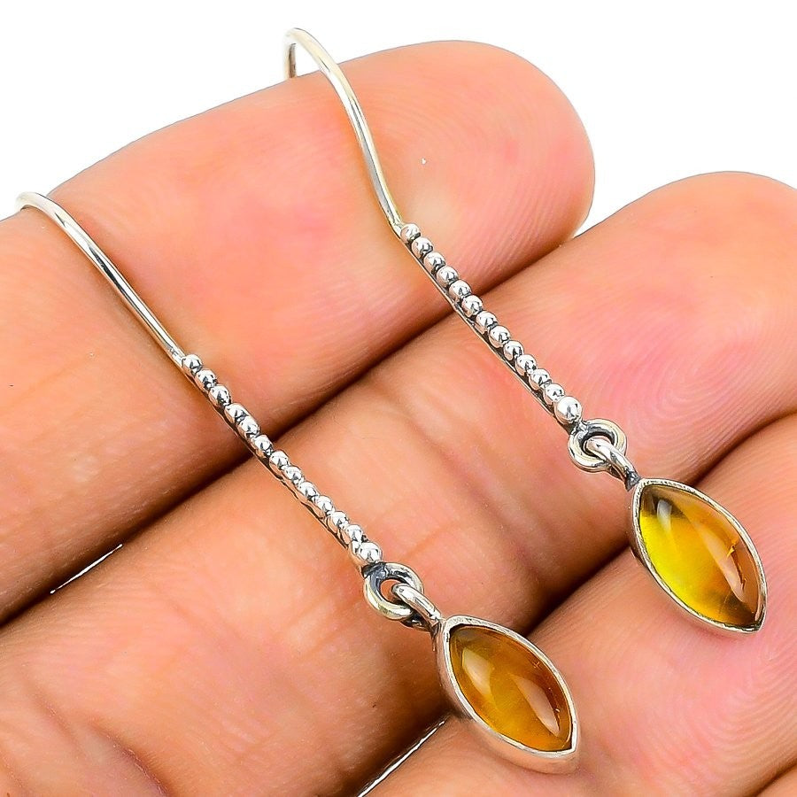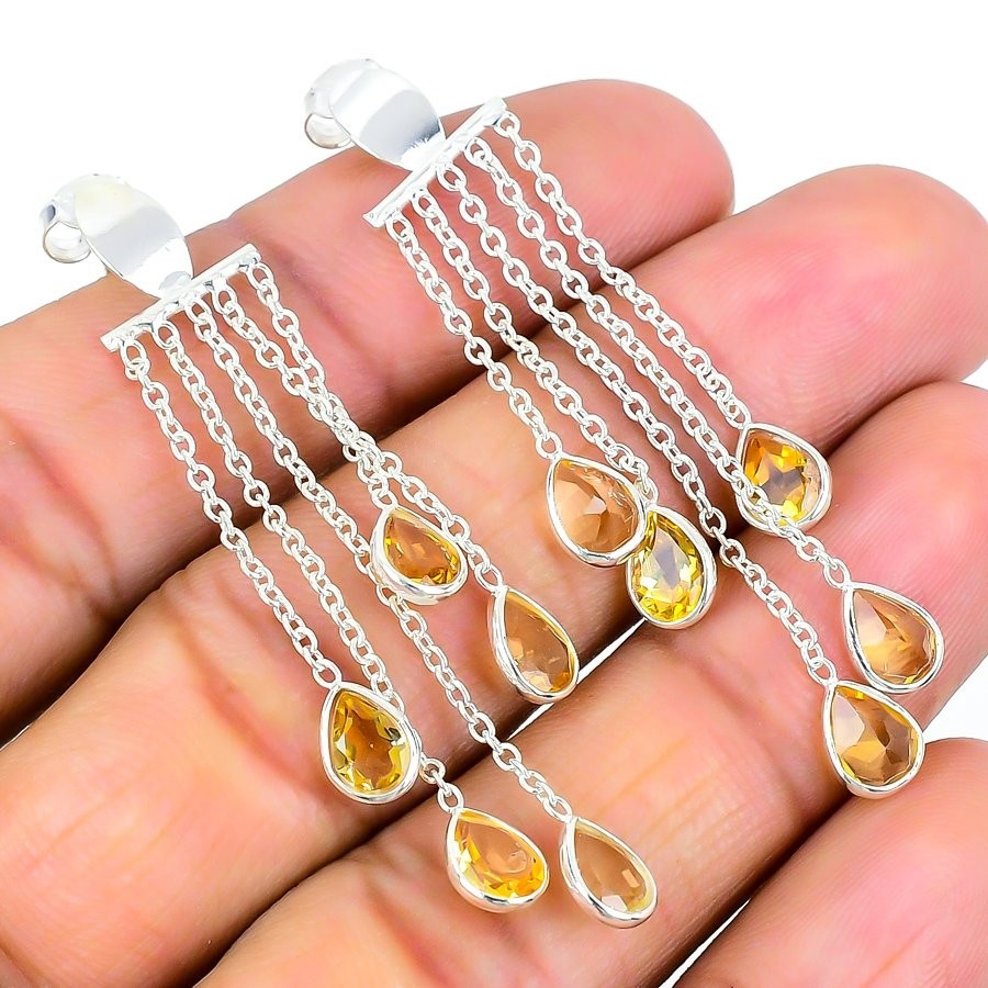 Daughters Day Deal Citrine Gemstone Hook Dangle Drop Earrings 925Ā SolidĀ Silver