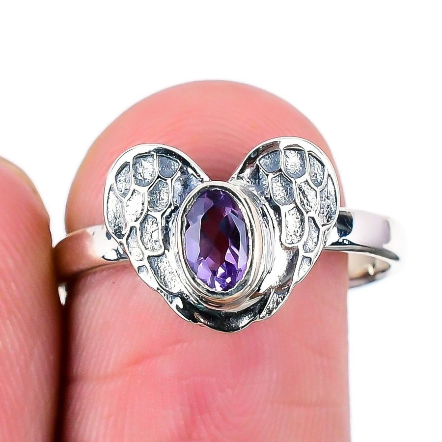 Amethyst Gemstone Solid Sterling Silver Statement Handmade Ring Jewelry US 5.5