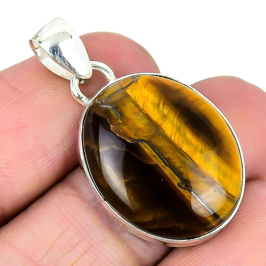 Tiger Eye Gemstone Solid Sterling Silver Art Deco Wife New Boho Pendant Jewelry