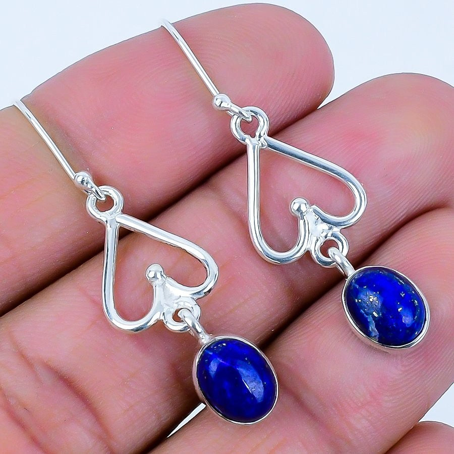 Natural Lapis Lazuli 925Ā SolidĀ Silver Hook Art Deco Sister Drop Dangle Earrings