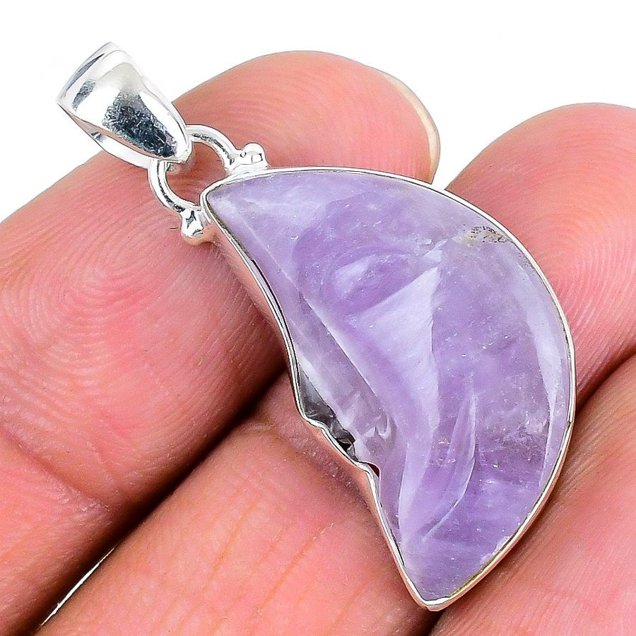 Sage Amethyst moonface Gemstone Bezel Handmade Daughter Pendant 925Ā SolidĀ Silver