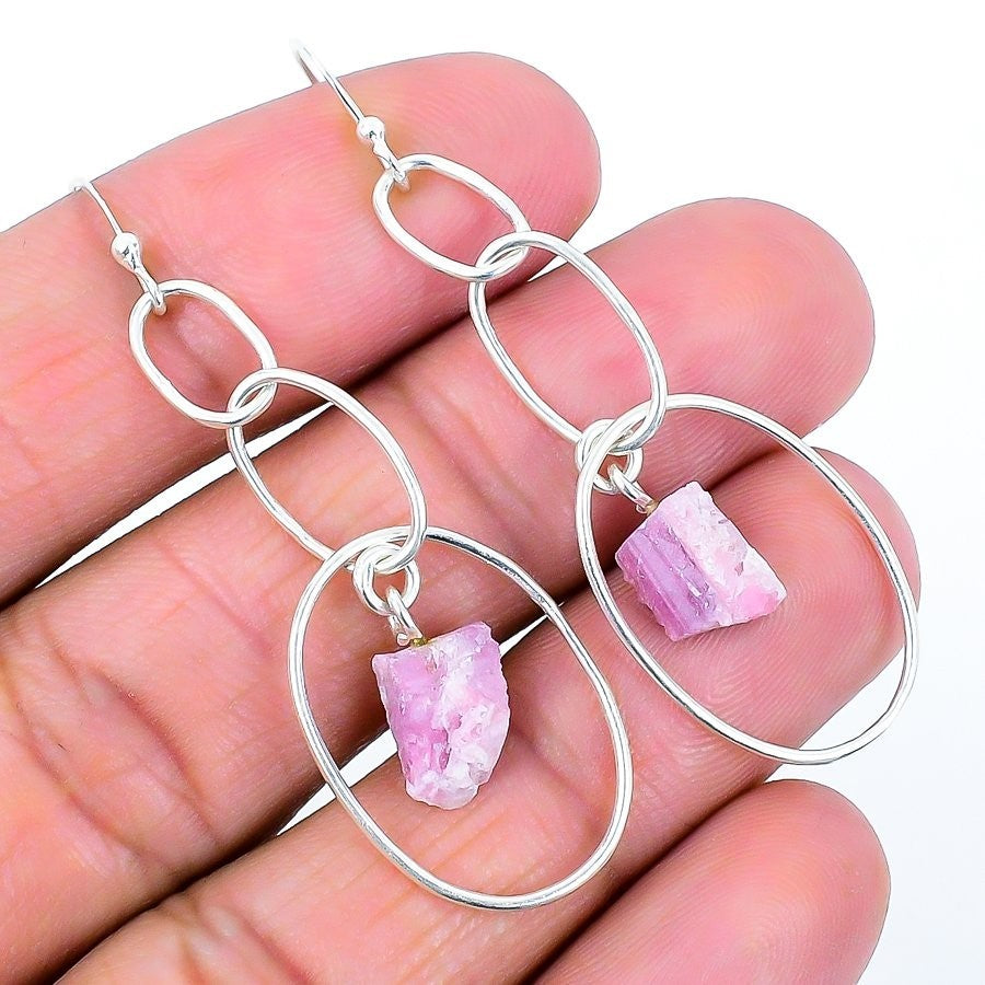 Natural Pink Kunzite 925Ā SolidĀ Silver Drop Dangle Elegant Boho Earrings Jewelry
