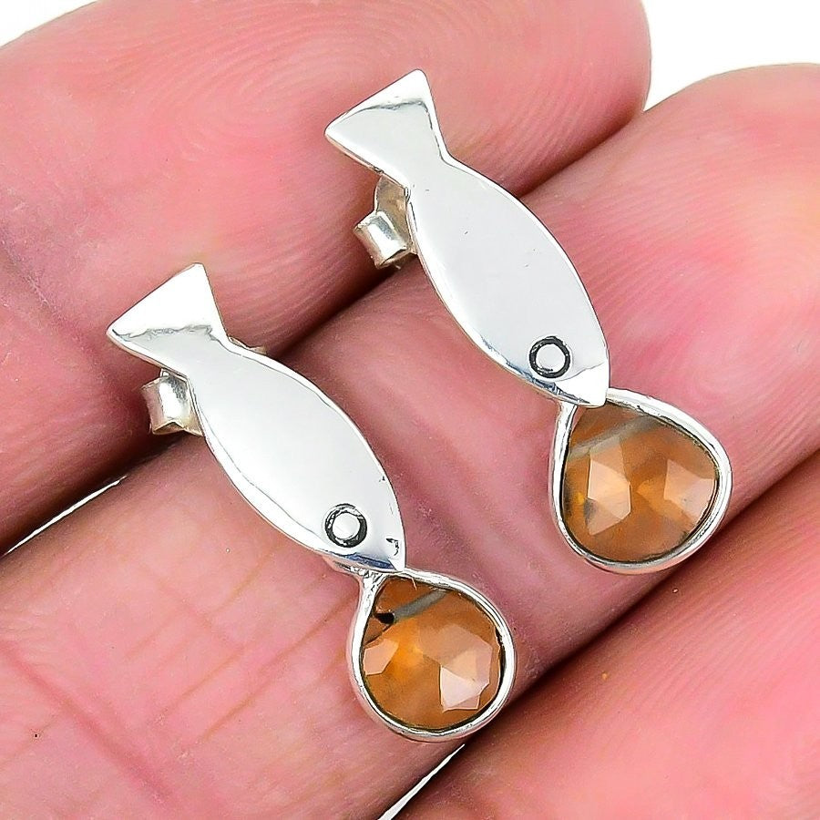 Golden Rutile Stone 925Ā SolidĀ Silver Daughter Hook Dangle Drop Earrings Jewelry