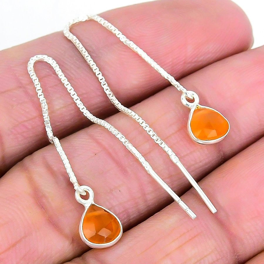 Natural Orange Carnelian Wife Dangle Daughters Day Trendy Earrings Solid Silver