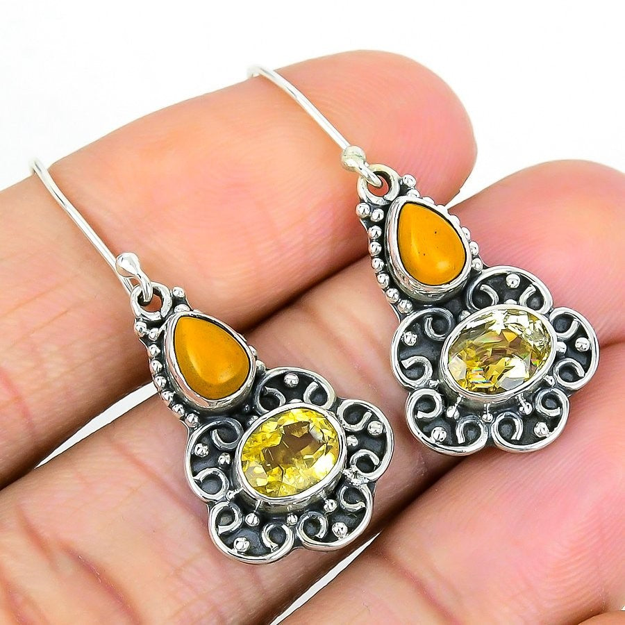 Citrine Stone Solid Sterling Silver November Drop Dangle Handcrafted Earrings