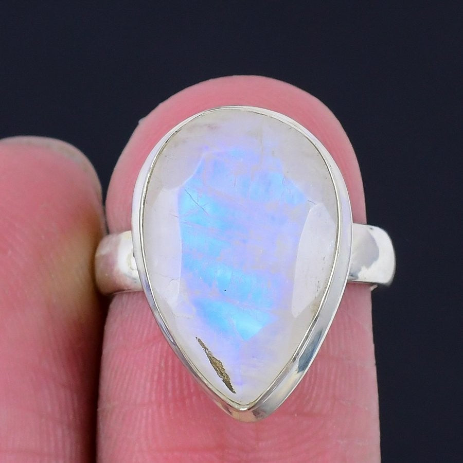 Rainbow Moonstone Gemstone Engagement Cluster Ring Size 6 925 Sterling Silver